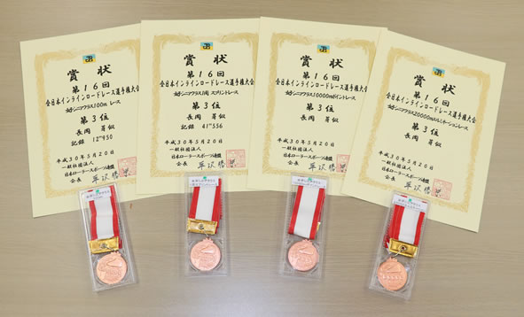 5月19・20日に岐阜県クリスタルパーク恵那スケート場(岐阜県恵那市)で行われた「第16回日本インラインロードレース選手権大会」で、女子シニアクラスに出場した長岡さんが、またしても銅メダルを獲得しました。